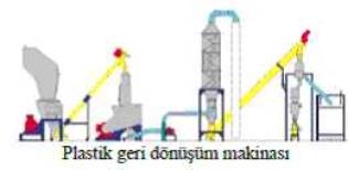 -Atık hale gelmiş plastik malzemelerin tekrar üretime uygun hammadde haline dönüştürmeye yarayan, ekstrüzyon sistemiyle çalışan Plastik geri dönüşüm makinesi, atık hale gelmiş plastik malzemeleri tekrar üretim hammaddesine dönüştüren makineler olduğu anlaşılmış olup aşağıdaki şekilde tipik bir plastik geri dönüşüm makinesinin yer verilmiştir.