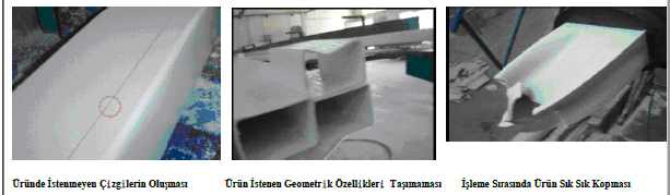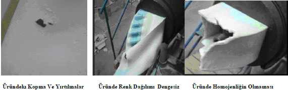 Ekstrüzyon ile üretimde makineden kaynaklanan üretim hataları dendiğinde; set edilen makine değerlerindeki yanlışlıkların veya makinede meydana gelmiş bir arızanın ürüne olumsuz olarak yansıması şeklinde olduğu, aşağıda makineden kaynaklı üretim hataları sonucu ortaya çıkan hurdalara ait resimlere yer verilmektedir.