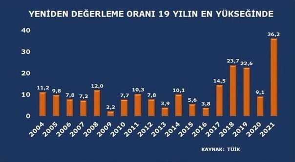 2021 Yılı İçin Yeniden Değerleme Oranı % 36,20 Oldu
